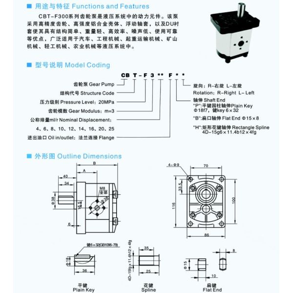 CBT-E3******series gear pumps are external pumps with axial compensation and radial balancing. They are widely applied in hydraulic system and Agricultural & Tractors and Engineering Trucks.