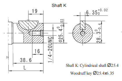 Output Shaft : Cylindrical Shaft Ø25.4, Woodruff key Ø25.4×6.35